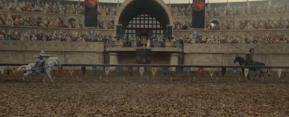 比武大会也是这个系列的老传统了。《权力的游戏》里,格雷果挑落马泰尔,还与洛拉斯·提利尔对决;《龙之家族》的开篇,就是戴蒙与克里斯顿·科尔的一场比武。