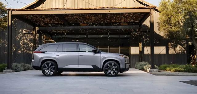 来到车身侧面,半隐藏式门把手,宽大的轮拱,车辆通过降低整体高度、增加宽度和轴距,看上去更为修长,且有力量感。C柱和D柱的之间的侧窗面积较大,新车的后备箱空间有望提升。车身尺寸,此次并未有曝光。